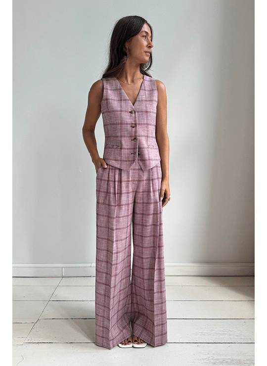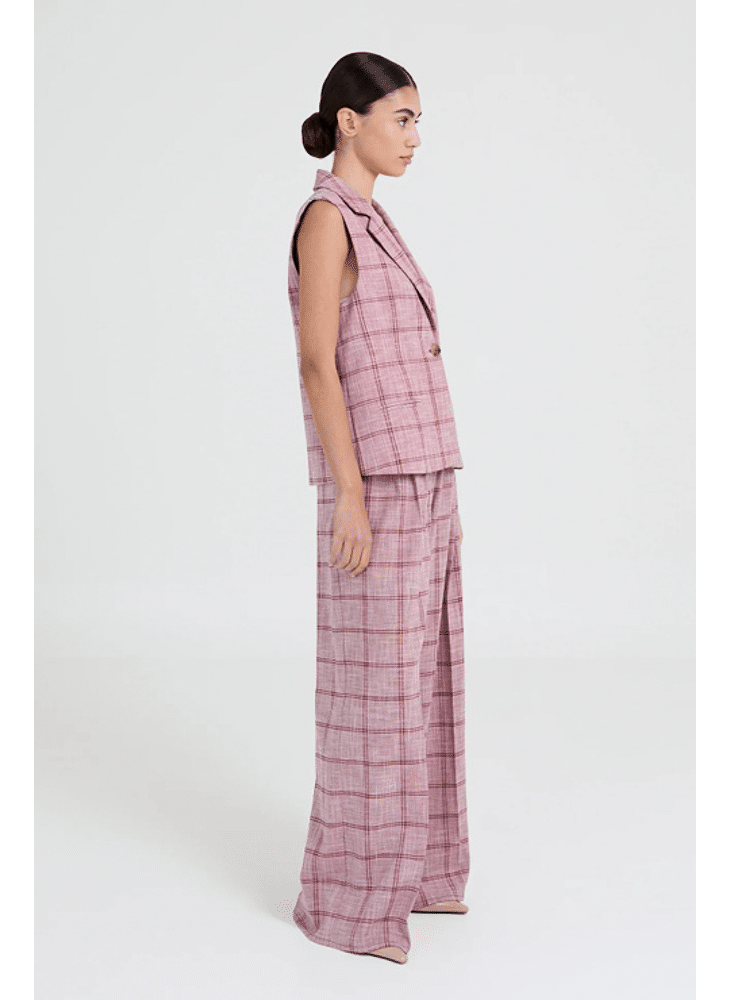 Soft pink tone with a matching checked pattern