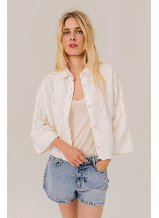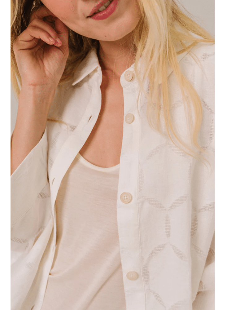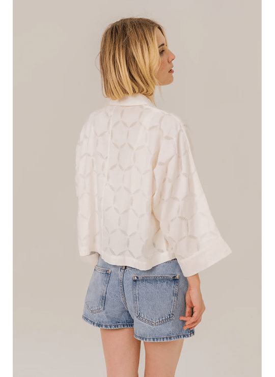 • Oversized cropped shirt in a cotton, viscose, and linen blend