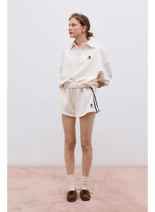 - Polo in soft cotton fleece with ribbed cuffs and hem, featuring branded embroidery on the chest and a tonal buttoned neck opening.