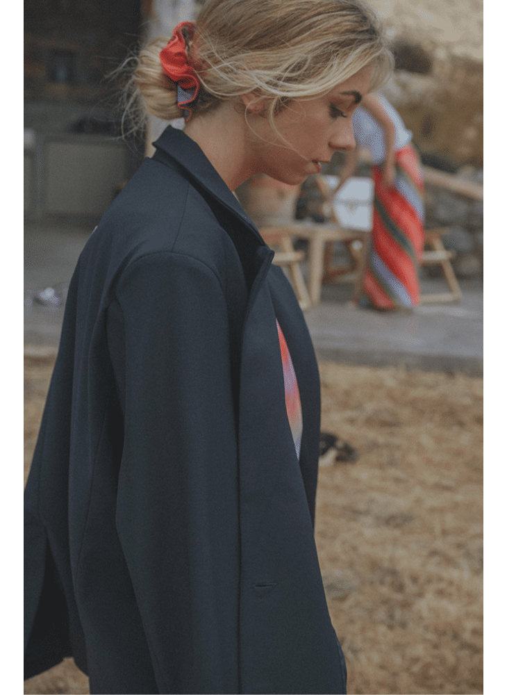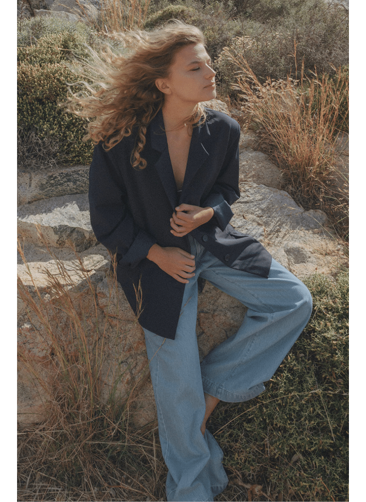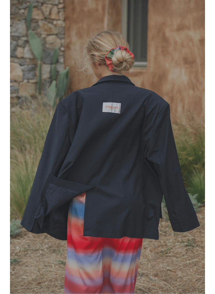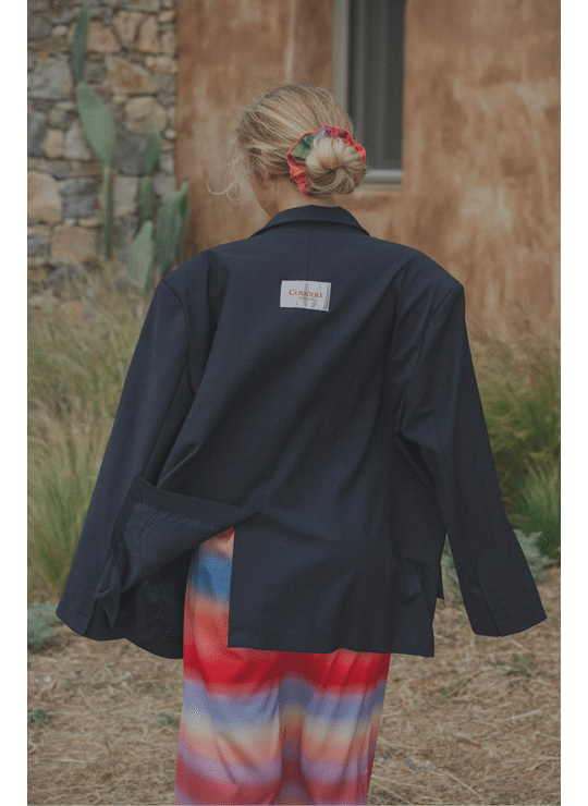 Oversized navy blue blazer with shoulder pads. One size fits all.