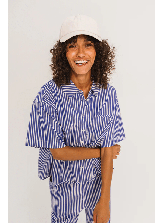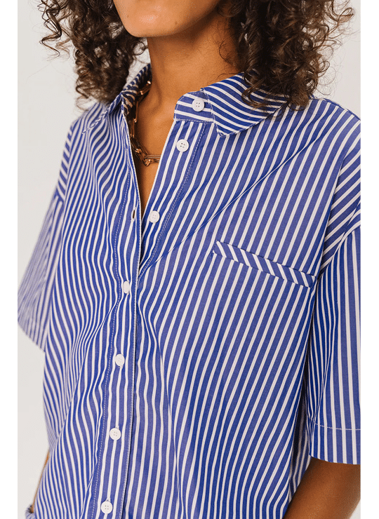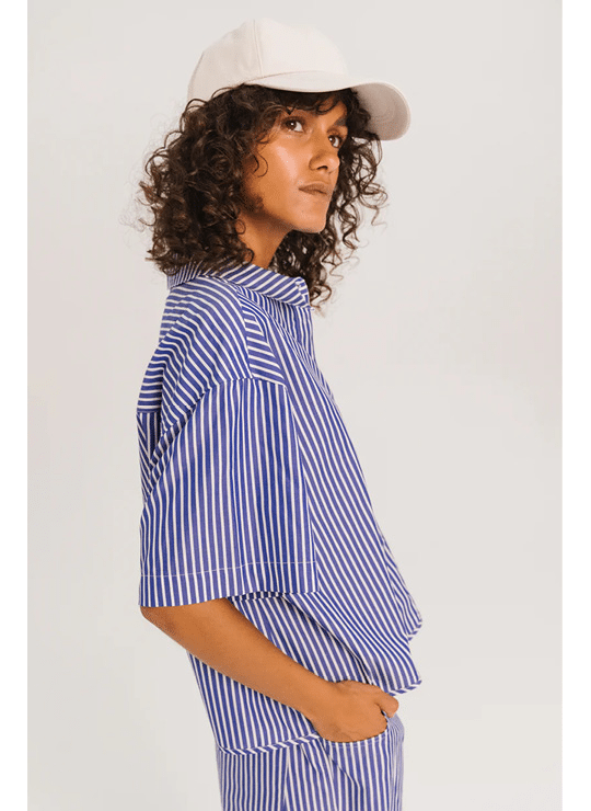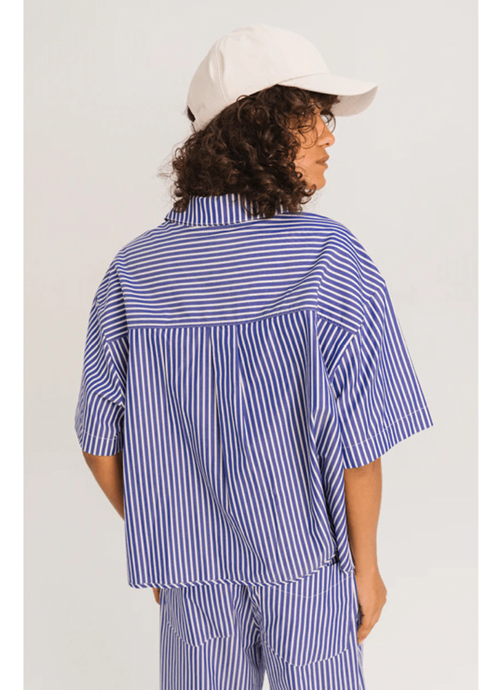 • Short-sleeved shirt, loose and cropped cut with dropped shoulders