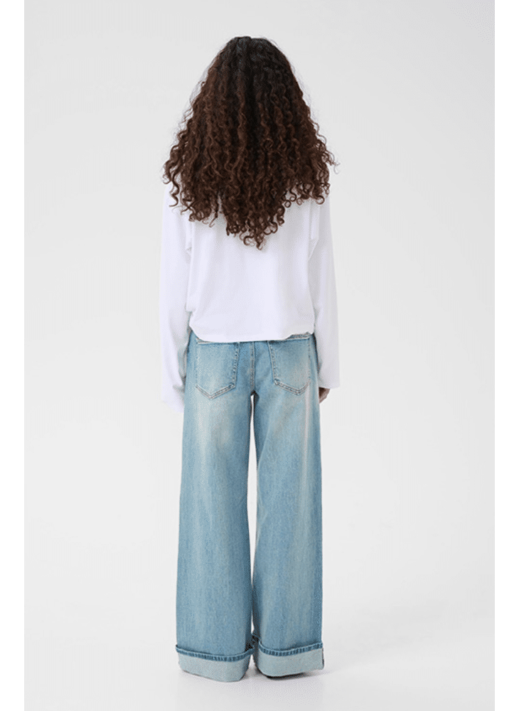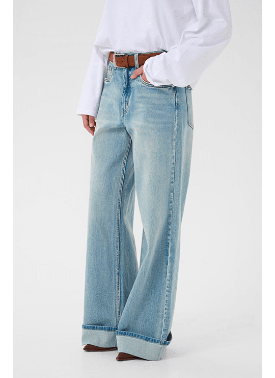 Slim fit design for a sleek, modern silhouette, folded pipes